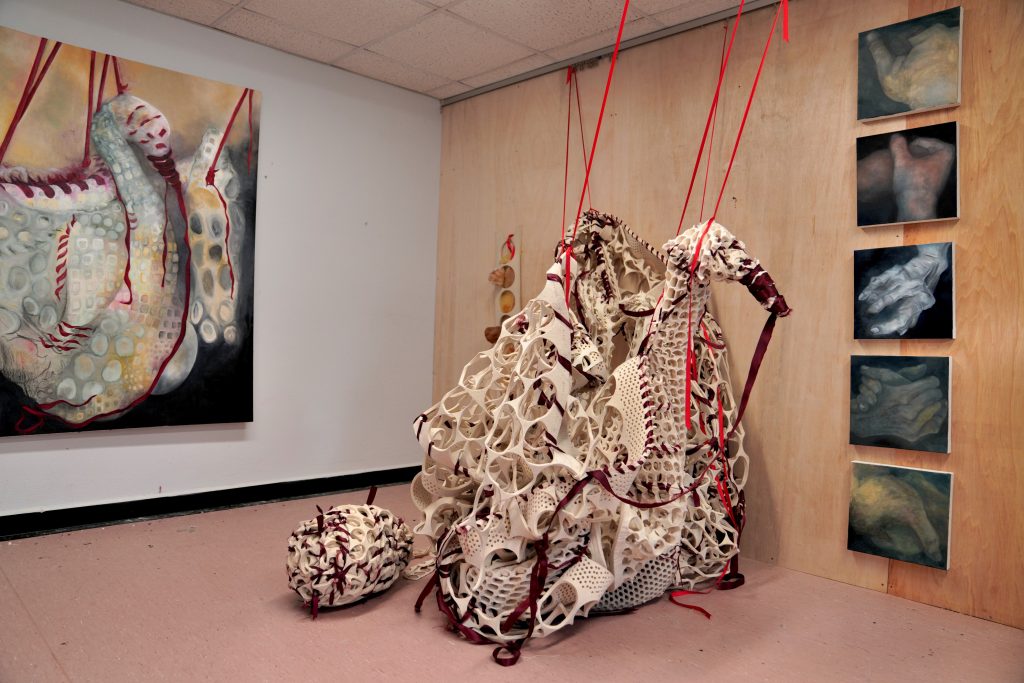 In 2017 I discovered I had a rare form of cancer in my left hand index finger called chondrosarcoma. I had to chose between amputation, removing the cancer and replacing it with a form of cement, or hollowing it out to leave a paper-thin layer of remaining bone. As I’m left handed, this finger represents creativity to me and so I opted to have it hollowed. The least invasive and optimistic option, given that bone eventually regenerates. The intensity of the graphite pencil was likely to have been the reason why my bone had pared down to eggshell, resulting in a fracture that revealed the cancerous growth. The scans fascinate me as they look so like my drawings. Deadly but somehow uplifting.