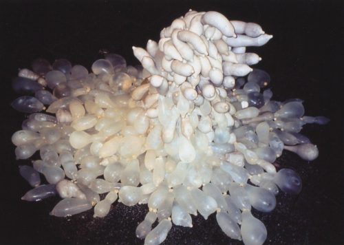 This sculpture was commissioned by Sammas Gallerii, Tallinn, Estonia, and was made up of condoms filled with a mix of plaster and water. The motor inside the flower dragged the ‘petals’ in an ever changing circle of forms evocative of body parts.